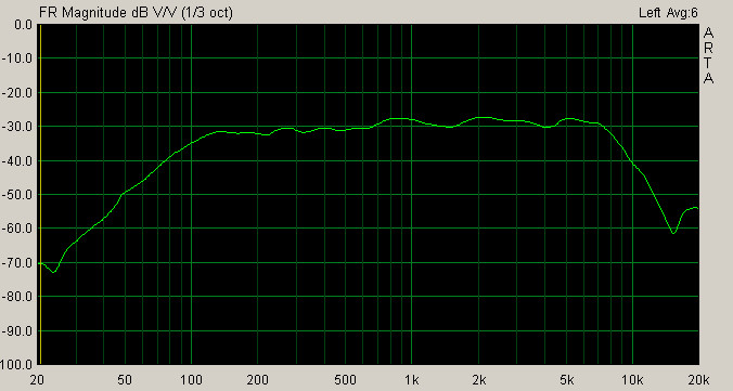 АЧХ с расстояния 50 см. ЗЯ 6 литпров. Сглаживание 1/3 октавы.