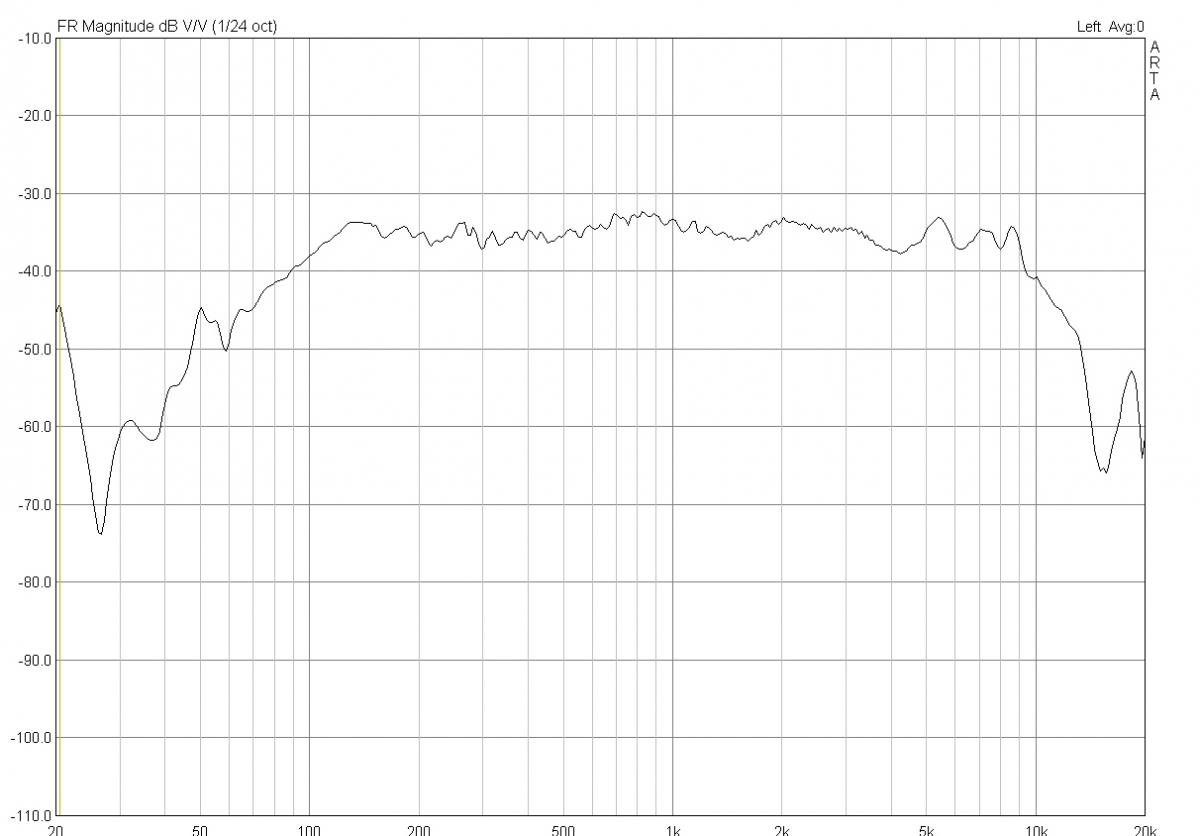 АЧХ с расстояния 50 см. ЗЯ 6 литпров. Сглаживание 1/24 октавы.