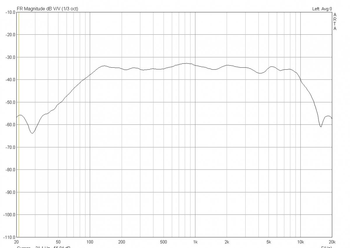АЧХ с расстояния 50 см. ЗЯ 6 литпров. Сглаживание 1/3 октавы.