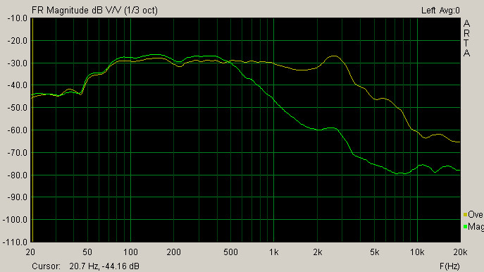 АЧХ в корпусе 40 литров с расстояния 50 см.