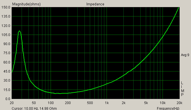 АЧХ в корпусе 40 литров с расстояния 50 см. Сглживание 1/3 октавы.