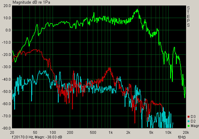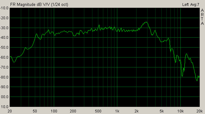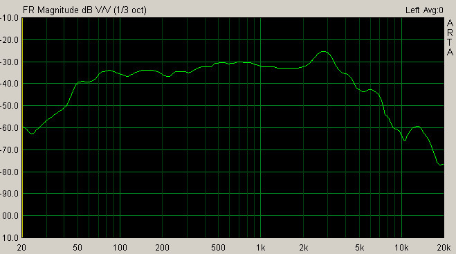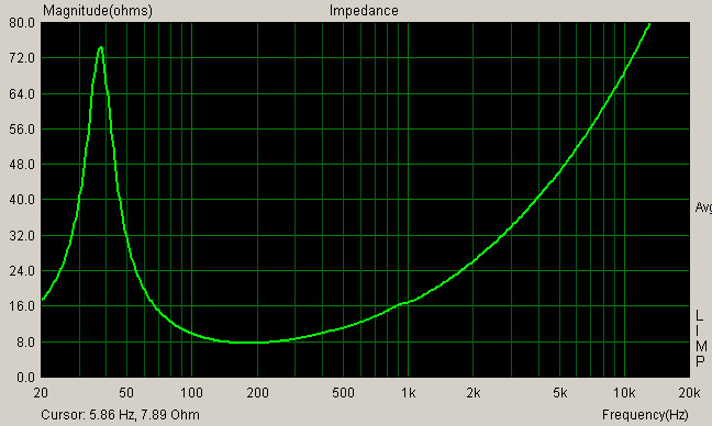 АЧХ в корпусе 40 литров с расстояния 50 см. Сглживание 1/3 октавы.