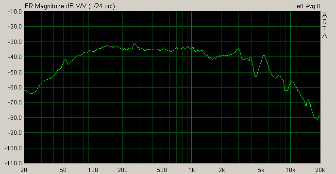 АЧХ с расстояния 50 см. ЗЯ 6 литпров. Сглаживание 1/24 октавы.
