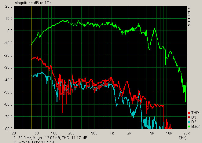 АЧХ с расстояния 50 см. ЗЯ 6 литпров. Сглаживание 1/3 октавы.